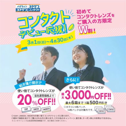 コンタクトデビュー応援割引!!! 2F ヨネザワコンタクトよりご案内 コンタ…