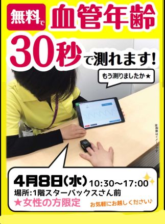 【無料】血管年齢測定のお知らせ 2階つばめ歯科さん前にある 女性専用体操教室… 1日前
