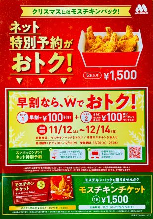 ★クリスマスにはモスチキンパック★ みなさま こんにちは(´∀`*)♪ モスバー…