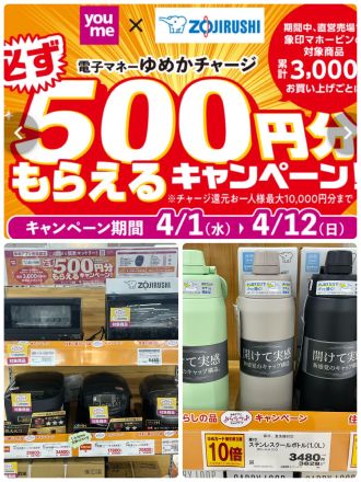 象印♪ららら♪キャンペーン 2F 家庭用品コーナーです( ´ ▽ ` )ノ 4/12… 12時間前