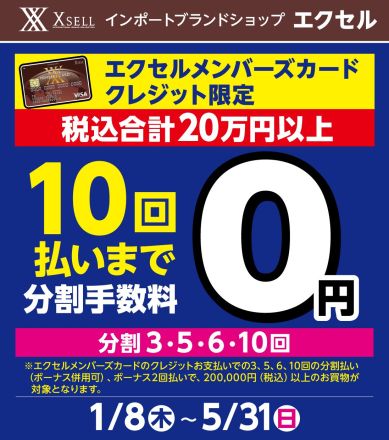 税込合計20万円以上 〜10回払いまで… 2Fインポートブランドショップエクセルよりご案… 5日前