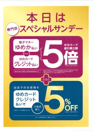スペシャルサンデーのご案内 こんにちは! ゆめタウン宇部専門店からご案… 16時間前