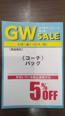 <エクセル>コーチバッグ今付いてる税… 2階エクセルよりご案内です。 4/29日(水)… 3時間前