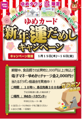 【ゆめカード】新春運試しガラポン抽選… ゆめカードから新春運試しガラポン抽選会のお知… 8時間前
