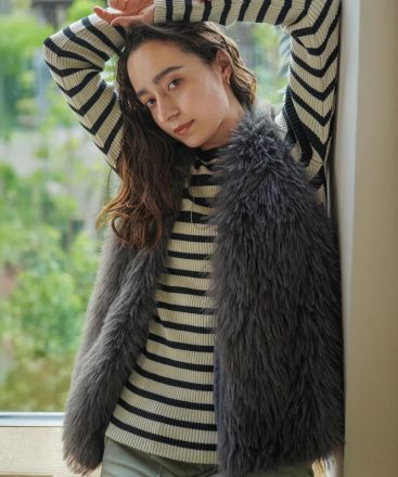 【Boujeloud】おしゃれファーベスト♪ ふわふわのフェイクファーが目を惹く、上品なベ… 1日前