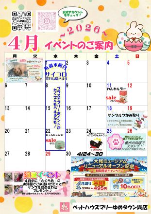 【ペットハウスマリー】4月イベントカ… こんにちは♪ ペットハウスマリーです 4… 3日前