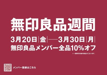 【予告】無印良品週間開催のお知らせ こんにちは! 3階無印良品より、無印良品週間… 19時間前