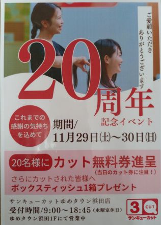 サンキューカット20周年記念イベント こんにちは。 1階のサンキューカットゆめタウ…
