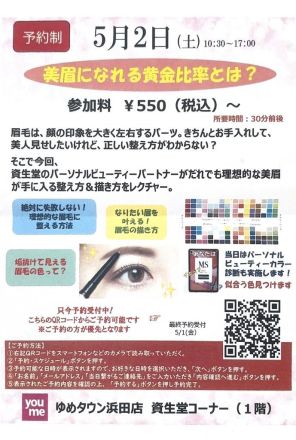 資生堂コーナーよりイベント開催のお知… 1F資生堂コーナーより『眉レッスン』 開催のお… 1日前