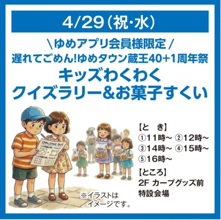 キッズわくわくクイズラリー&お菓子す… \ゆめアプリ会員様限定/ 遅れてごめん! ゆ…