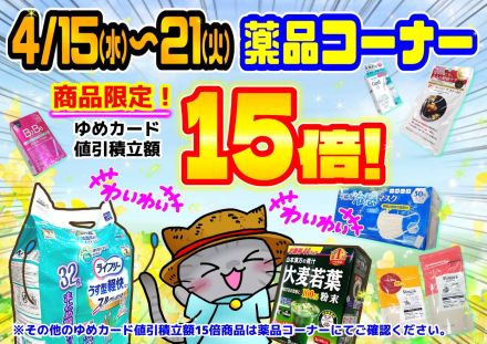 4/15(水)〜4/21(火)商品限定15倍 4/15… こんにちは♪ ゆめタウン蔵王 薬品売場よりゆ… 5日前