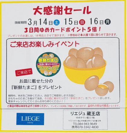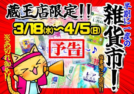 【予告】蔵王店限定価格!雑貨市3/18(… こんにちは♪ ゆめタウン蔵王店より 雑貨市の… 1日前
