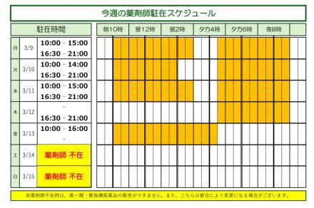 【薬品コーナー】今週の薬剤師駐在時間… ゆめタウンはません1階薬品コーナーより 今週… 4日前