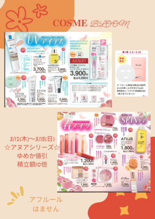 アフルール コスメBLOOM開催中 1階薬品売り場横アフルールでは \只今、コス… 7時間前