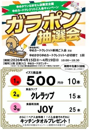 [はません店限定]ゆめカードクレジッ… はません店1階ゆめカードカウンターより お得… 8時間前