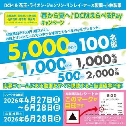 春から夏へ!DCMえらべるPayキャンペー… (シャンプー・リンス、ボディケア、オーラルケ… 3時間前