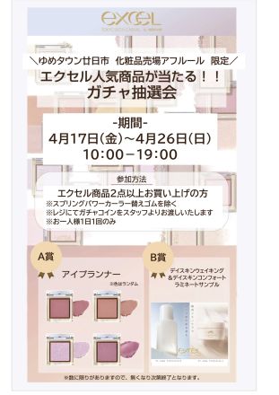 現品が当たる?!エクセルガチャ開催★ 1階 化粧品売場アフルールより エクセルガチャ…