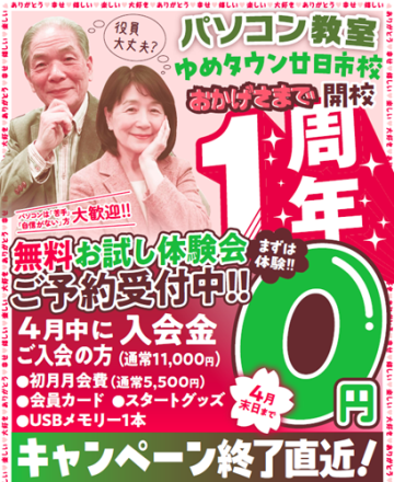 2階パソコン教室 お得な入会金0円 4… こんにちは、パソコン教室わかるとできる ゆめ… 1日前