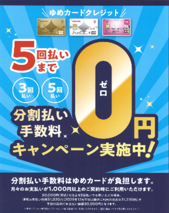 ゆめカードクレジット分割5回払いまで… 皆さん、こんにちは! 1Fゆめカードカウンター… 2日前