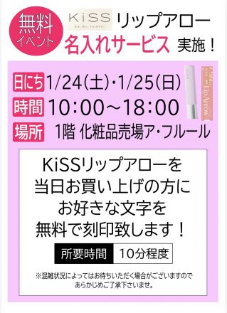 【予告】KiSS刻印イベント 1階 化粧品売場アフルールより、 イベント開催… 3日前
