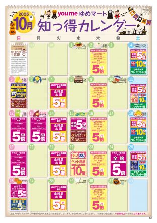 10月知っ得カレンダー いつもご利用ありがとうございます☆ 10月の知…