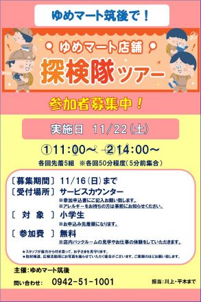 ゆめマート探検ツアー申込受付中! こんにちは! 11月22日(土)に小学生の方を対… 9時間前