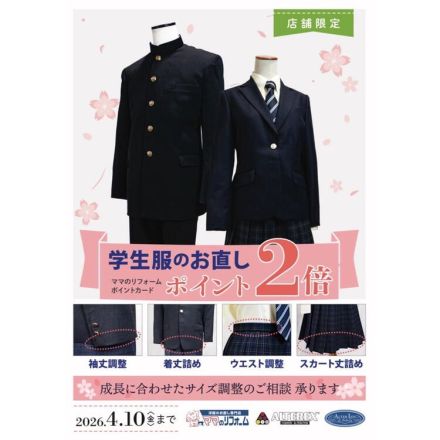 学生服のお直し 2階 ママのリフォームより 4月10日(金)まで… 5日前