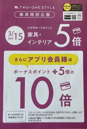 『ナフコ21スタイル』よりお知らせ 【家具特別企画】 3月15日(日)限定 家具… 2日前