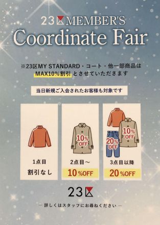 【2F 23区】半期に一度のコーディネー… 期間中、1点目→割引なし 2点目→税込… 1日前