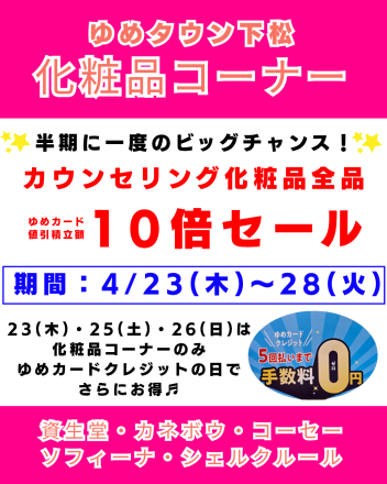 ☆★半期に一度のビッグチャンスセール… こんにちは!ゆめタウン下松化粧品コーナー…