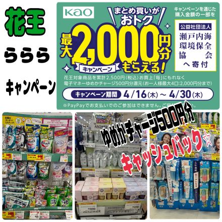 500円キャッシュバック!花王フェア開… 1階 日用品雑貨コーナー・薬品コーナーより …
