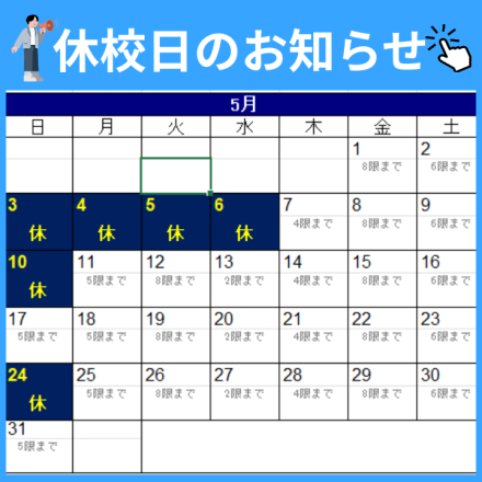 今月の休校日をお知らせいたします。 みなさん、こんにちは! パソコン教室わかると… 2時間前