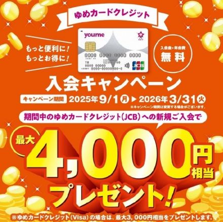 ゆめカードよりお得なキャンペーンのご… ただいまゆめJCBカードに新規ご入会またはお切…