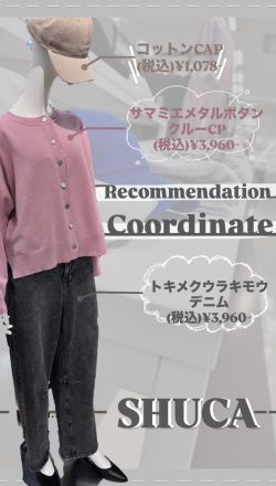 2階 婦人服 SHUCAコーナーより 皆さんこんにちは! 2階 婦人服 SHUCAコーナ…