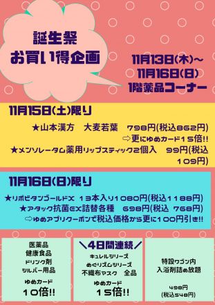 【薬品コーナー】誕生祭お買い得企画!… 1階薬品コーナーより、 ゆめタウン佐賀19周… 22時間前
