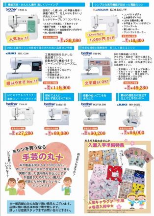 キャンペーン限定価格でお買い得! 数量限定の商品もございます。 お買物券をプレゼントなど各機種ごとにお買い得特典あり☆ 手芸屋さんならではの実際に使った使用感などもお伝えします。 相談しながら買いたい方はぜひ手芸の丸十まで!
