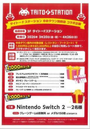 3/20(金)スタート! タイトーFステーシ… ゆめタウン別府館内の対象店舗(レストラン・フ…