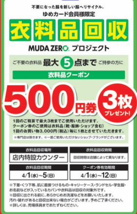 ゆめタウン別府店からのお知らせ ゆめカード会員様限定、衣料品回収セール実施中… 3日前