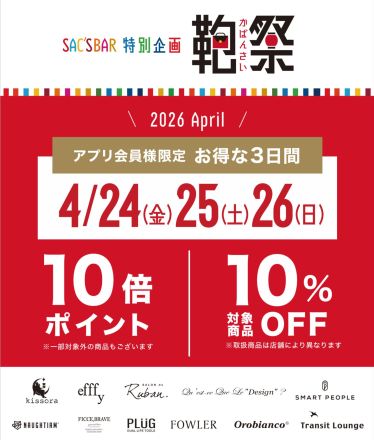 ☆専門店サックスバーより鞄祭のお知ら… 4/24(金)~4/26(日)一部対象ブランド商品10%OFF… 23時間前