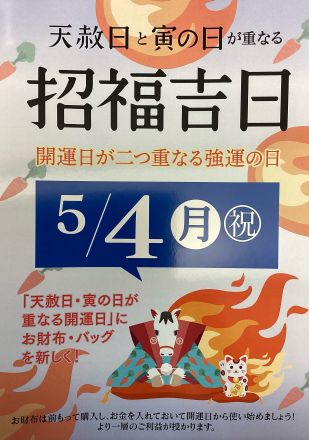 ☆専門店サックスバーより天赦日のお知… 5月4日は『天赦日』『寅の日』二つが重なる強運… 4日前