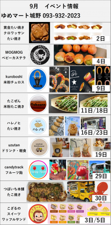 9月キッチンカーのお知らせ 9月のキッチンカーの予定が決まりました! 追…