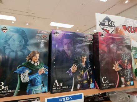 2階文具売場より、一番くじ春秋戦国大戦キングダムTheAnimation次代の傑物たち発売のお知らせです! 中国古代、秦の始皇帝の時代が舞台の壮大な物語「キングダム」が一番くじに登場! 王翦や桓騎がフィギュアになりますよ! 「合従」ってどう読むんでしたっけ? くじ価格は一回税込790円です! なお、発売初日に限り、お一人様5回までの購入制限がございます。ご了承下さいませ。 一番くじは2階中央西寄り、婦人服・ランドセル・文具合同レジにて販売中です!