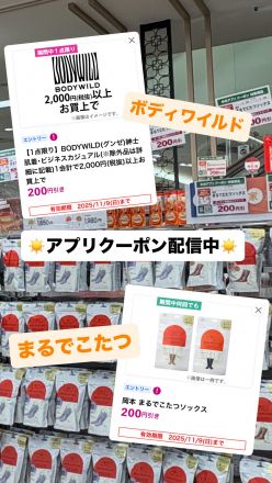 肌着売場アプリクーポン 2階肌着売り場です! 11月9日までお得なアプリ… 1日前
