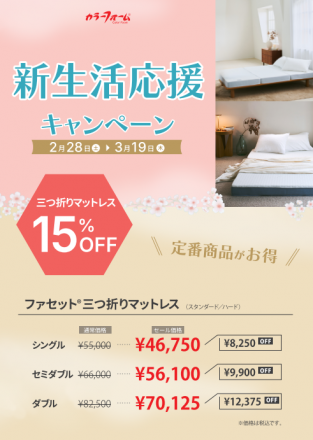 新生活応援キャンペーン★マットレス ★寝具コーナーより お得なキャンペーンのお知…