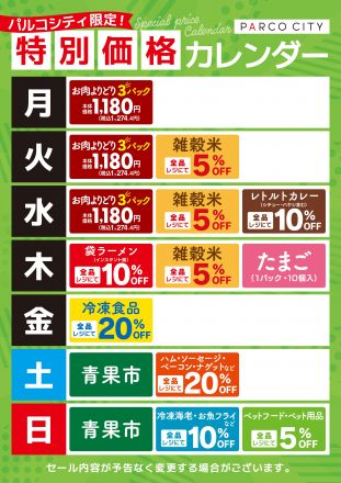 パルコシティ特別価格カレンダー3月か… パルコシティ特別価格カレンダーが2026年3…
