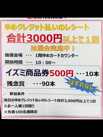 ゆめクレジット払い三角くじ抽選会開催… 19分前