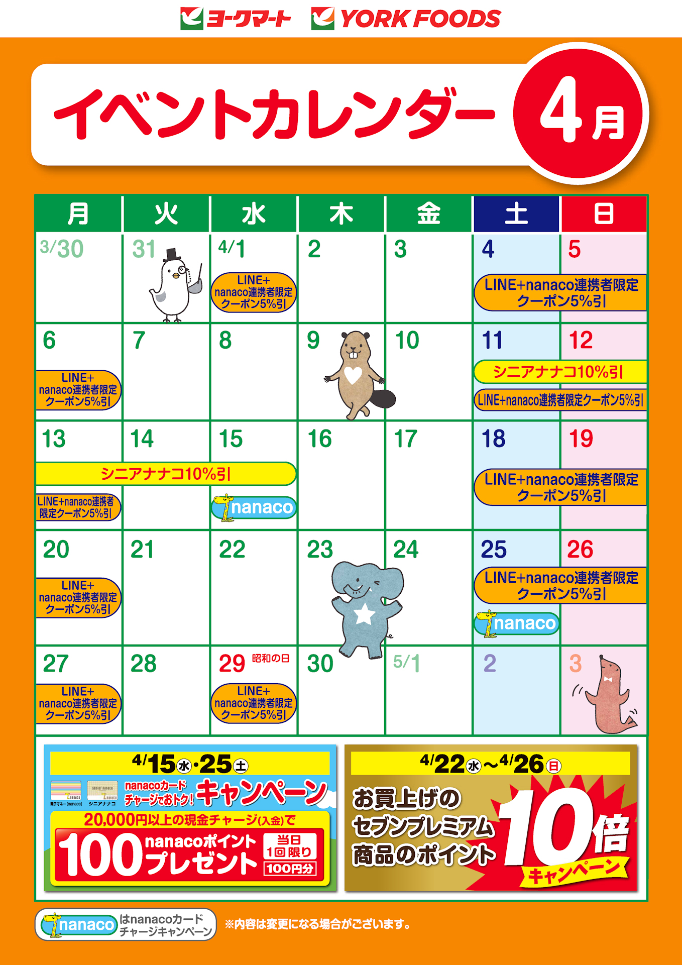 4月のイベントカレンダー