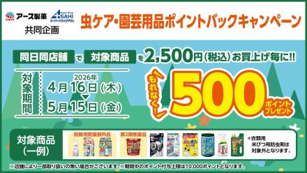 必ずもらえる!アース製薬虫ケア・園芸… レジでスーパードラッグアサヒポイントカードを… 5時間前