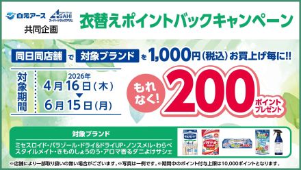 必ずもらえる!白元アース衣替え ポイ… レジでスーパードラッグアサヒポイントカードを… 5時間前