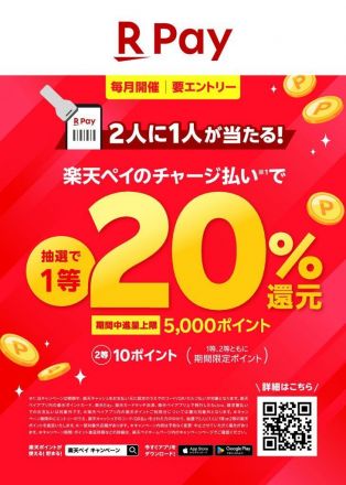 【楽天ペイ】2人に1人が当たる!楽天ペ… キャンペーン期間中にエントリーし、楽天キャッ…